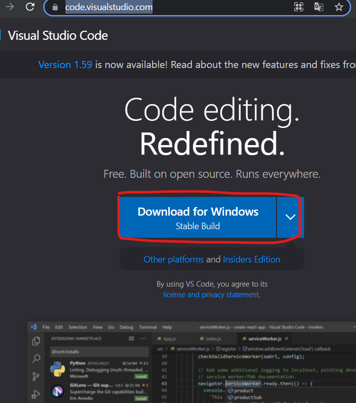 4. ๋น์ฅฌ์ผ ์คํ๋์ด ์ฝ๋ ์ค์น (=>https://code.visualstudio.com/)