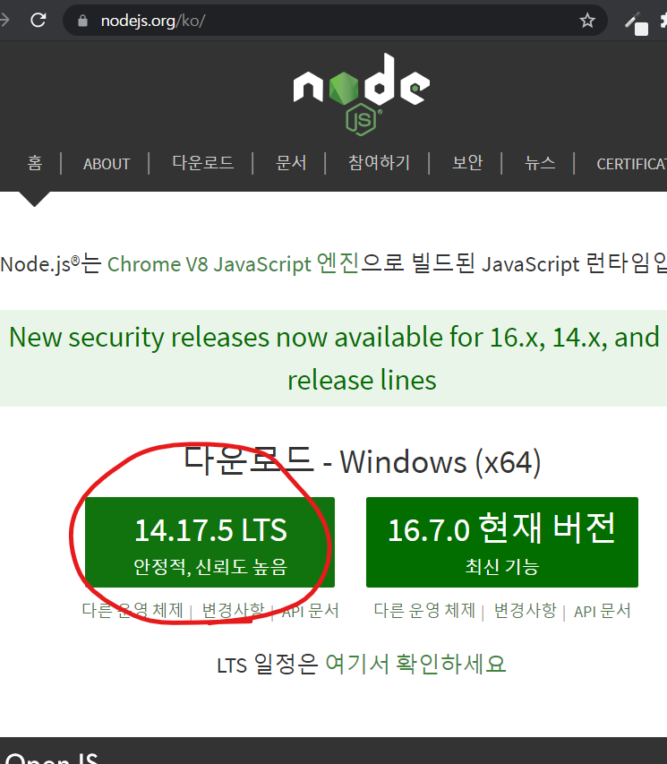 1. node js ์ค์น (https://nodejs.org/ko/)