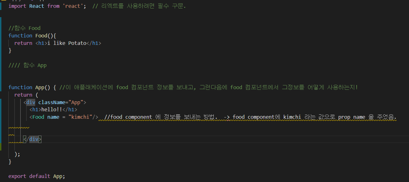 5. component ๋ ๋๋ฌธ์๋ก ์์ํด์ผํจ (ex: Food) , component ๋ก ์ ๋ณด๋ฅผ ๋ณด๋ผ์ ์์.