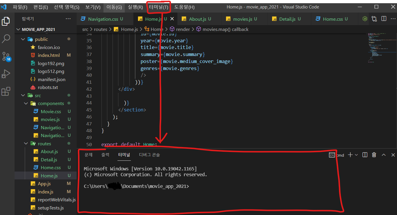 0. 프로젝트가 완성되었다는 가정 하에 시작합니다. ( '비쥬얼 스튜디오 코드' 프로그램 기준)