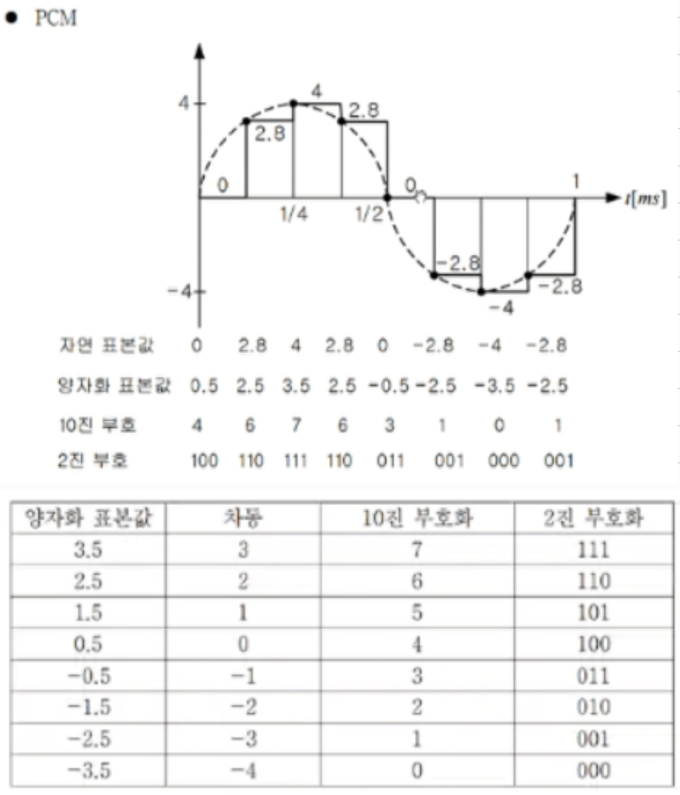 DPCM 은 differential pulse coded modulation 으로 현재값에서 앞에 값(이전 값)을 뺀 신호값차이를 부호화 한다.