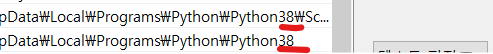 ์ด๋ ์๋์ ๊ฐ์ด python38์ด ์ ๋์จ๋ค๋ฉด ์ ๋๋ก ๋ python ๊ฒฝ๋ก๋ฅผ ์ฐพ์์ ํ๊ฒฝ๋ณ์์ ์ ์ฉ์์ผ์ฃผ์ด์ผํ๋ค.)