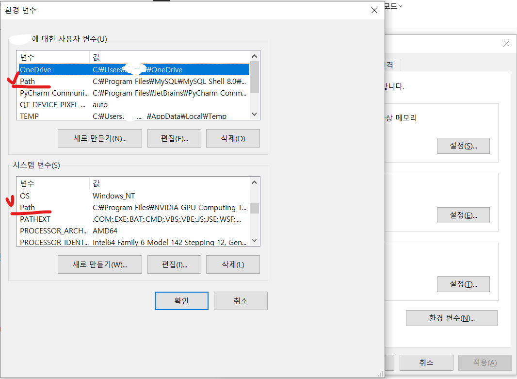 ํ๊ฒฝ ๋ณ์์์ <--(ํ๊ฒฝ๋ณ์๋ ์์ -> ๊ฒ์์ฐฝ์ 'ํ๊ฒฝ ๋ณ์' ์ ๋ ฅํ๋ฉด ๋์จ๋ค.)