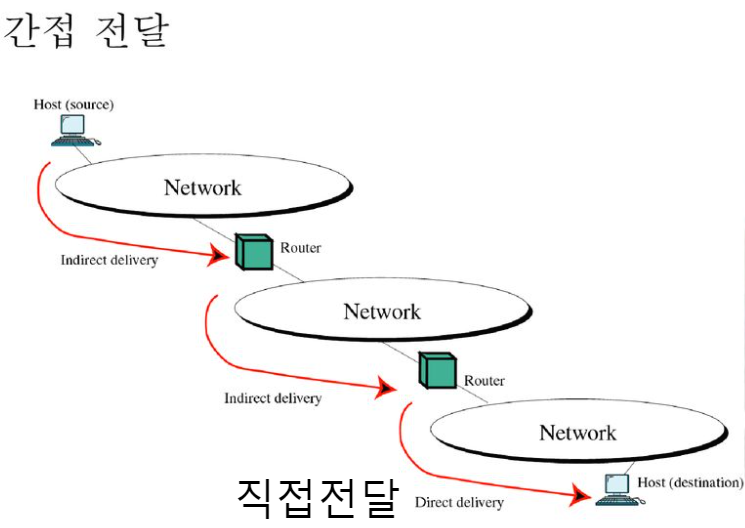 간접전달은 목적지 호스트가 전달자와 같은 네트워크에 있지 않으면 패킷은 간접적으로 전달된다.