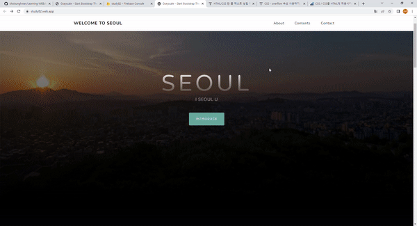 부트스트랩에 이미 만들어진 템플릿을 가지고 개인홈페이지를 만들어보았다. 처음부터 코드 짜는것보다 이렇게 누군가 기초틀 정도 만들어진 코드에다가 추가 수정하는걸 평소에 좋아하기 때문에 페이지를 개발하면서 너무 재밌었다.🤩