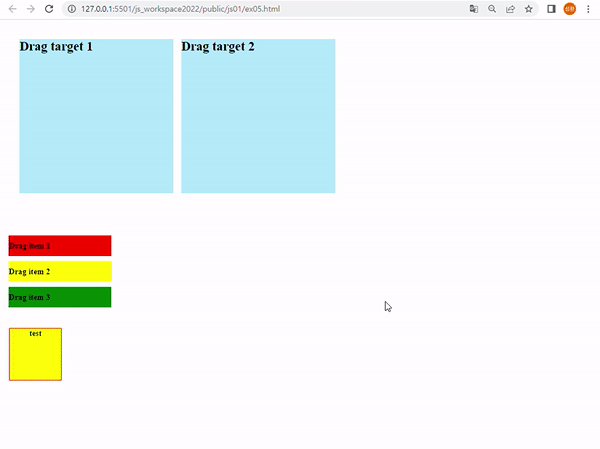 empty.addEventListener('drop', dragDrop); //drop: 드래그가 끝나서 드래그하던 객체를 놓는 장소에 위치한 객체에서 발생함