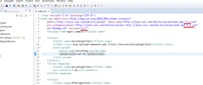 web.xml 파일에 모듈 버전을 앞서 설정한 3.1 버전으로 수정해주시면 됩니다. [본인이 ☝앞에 설정한 모듈버전으로! ]