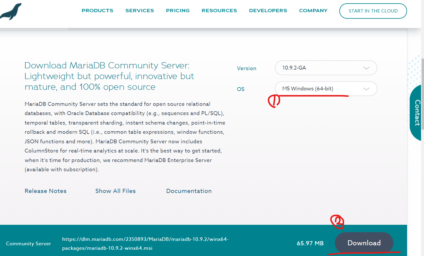 2. 마리아 db 버전 / 본인 pc에 맞는 OS 선택한 후, Download 버튼 클릭.