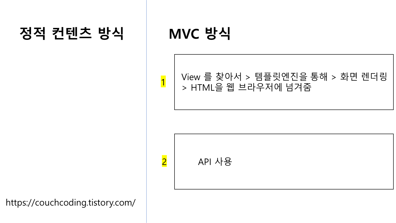 MVC ๋ฐฉ์์์ View๋ฅผ ์ฐพ์์ ํ ํ๋ฆฟ์์ง์ ํตํด์ ํ๋ฉด์ ๋ ๋๋งํ๊ณ , html์ ์น๋ธ๋ผ์ฐ์ ์ ๋๊ฒจ์ฃผ๋ ๋ฐฉ๋ฒ์ด ์๋ค,