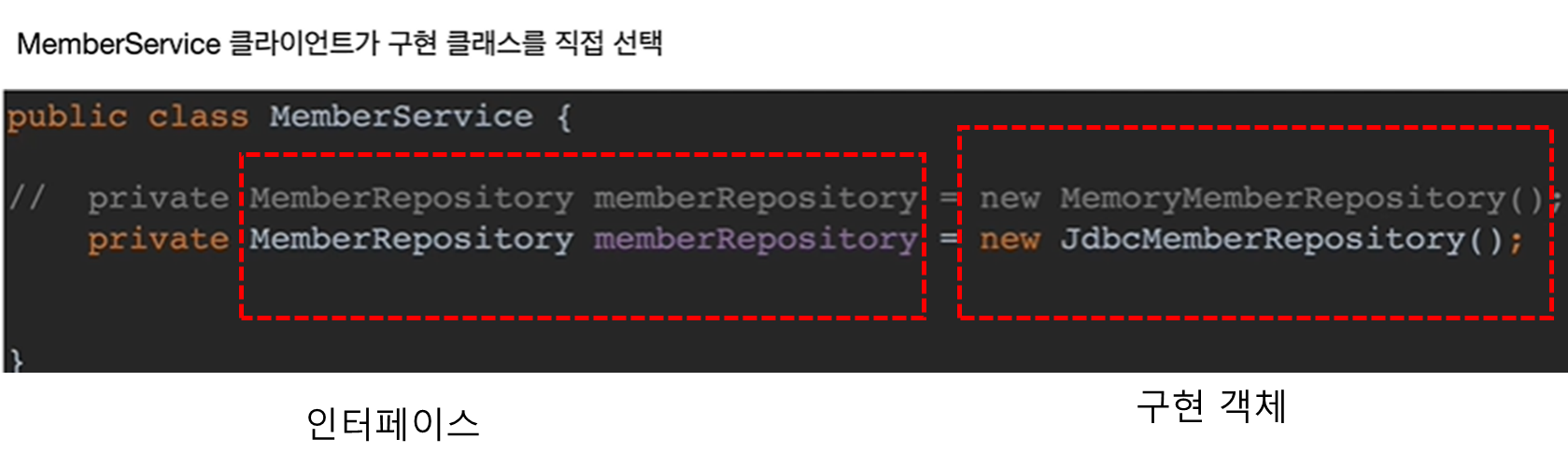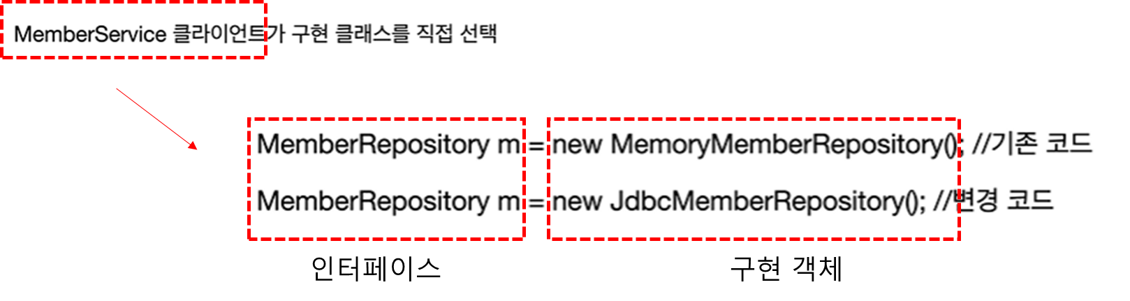 ๊ทธ๋์ MemoryMemberRepository๋ฅผ ๋ด๊ฑธ๋ก ๋ฐ๊พธ๋ ค๊ณ ํ ๋ ์ฝ๋๋ฅผ ๋ณ๊ฒฝํด์ผํ๋ค.