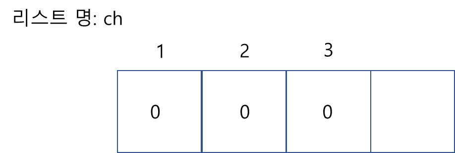 2. ch ๋ผ๋ ๋ฆฌ์คํธ๋ฅผ ๋ง๋ค์ด ์ค๋๋ค. ๊ฐ์ด 0 ์ผ๋ก ํด์ n+1 ํฌ๊ธฐ๋ก ๋ง๋ค์ด์ค๋๋ค.