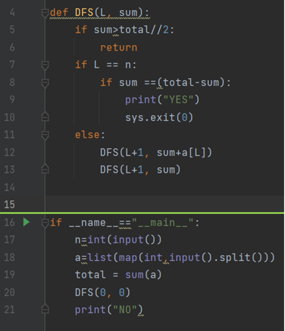 19์ค : total ๋ณ์์ a๋ฆฌ์คํธ์ ๋ชจ๋ ๋ํ ๊ฐ์ ์ ์ฅํ๋ค.