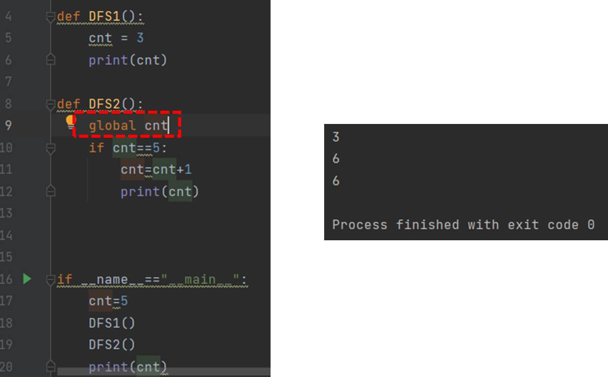 9๋ฒ์ค ์ฒ๋ผ global cnt ๋ฅผ ์ฝ๋์ ๋ฃ์ด์ฃผ๋ฉด ์ ์ญ๋ณ์๋ก cnt๋ฅผ ์ฌ์ฉํ๊ฒ ๋๋ค.