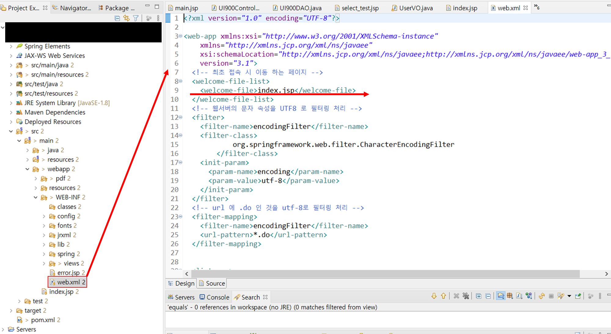 web.xml 파일부터 살펴보자 최초 접속시 실행되는 페이지를 index.jsp 파일로 지정해두었다.