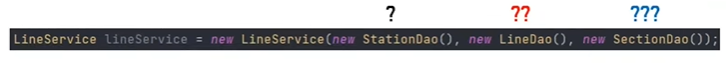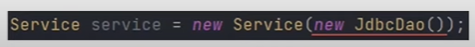 ์์์ฝ๋๋ฅผ ๋ณด๋ฉด Service๋ฅผ ์ด๊ธฐํํ๋๋ฐ ์๋น์ค์ ์์ฑ์๋ก DAO ๊ตฌํ์ฒด๋ฅผ ์์ฑํ์ฌ ๋ฃ์ด ์ฃผ๊ณ ์๋ค.