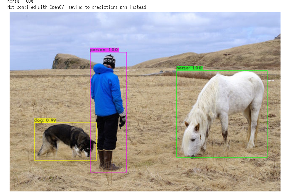 imshow ํจ์ ์คํ์ํค๋ฉด,, ์๋์ ๊ฐ์ด ๊ฐ์ฒด๋ฅผ ์ธ์ํ ์ฌ์ง์ ๋ณผ ์ ์๋ค.