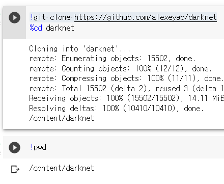 Colab์ Darknet ์ค์น