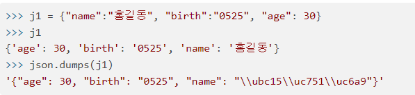 👉json문자열을 만들기 위해서는 json 모듈의 dumps 함수를 이용하면 된다.
