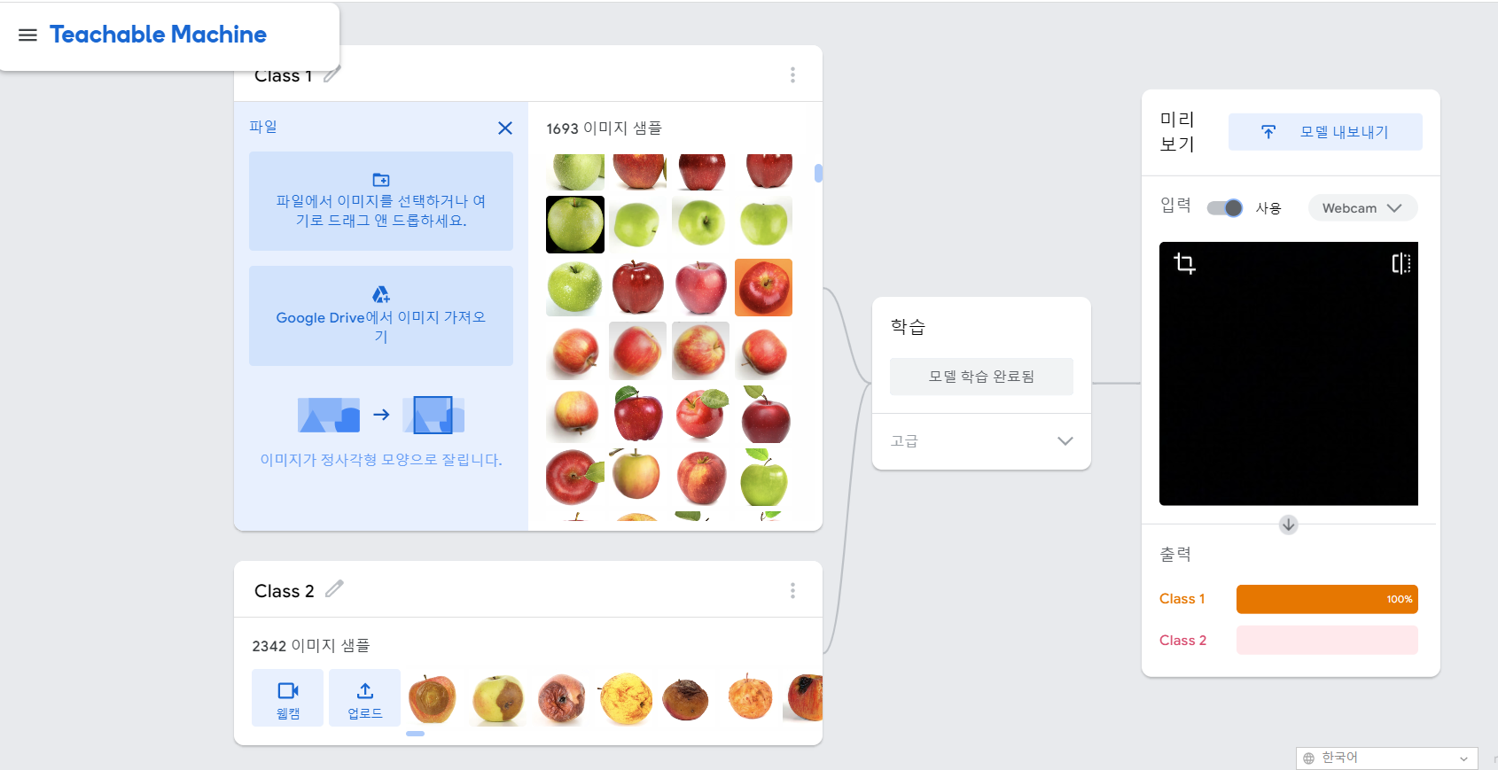 https://teachablemachine.withgoogle.com/ (์ด ์ฌ์ดํธ์์ ํ์ต)