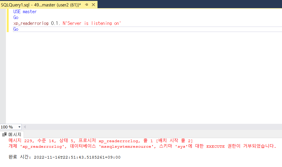 하지만 이 쿼리문을 mssql 새쿼리창에서 실행시 오류가 발생하였고 해당 오류를 또 구글링 해보니
