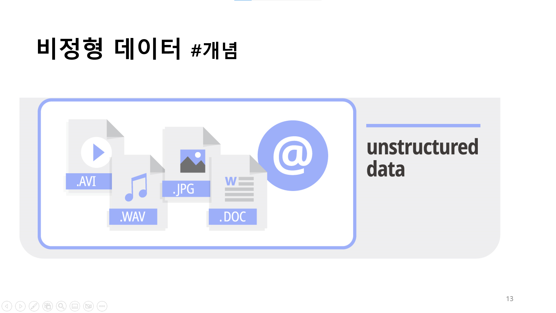 비정형 데이터는 최근 빅데이터가 주목을 받기 시작하면서 부각된 데이터 형태인데, 정형 데이터 외의 모든 데이터가 비정형 데이터입니다.