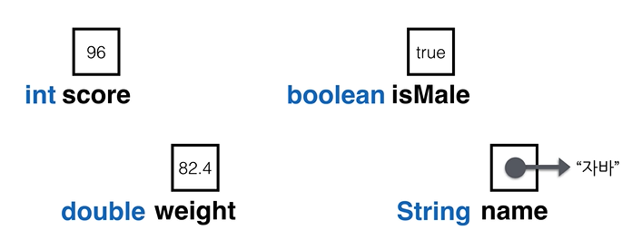 - 변수의 형태 (int, double, boolean, string,...)
