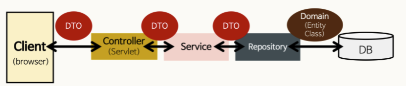 ์ํ! ๊ทธ๋์ ์์ ์ฌ์ง์ด ๊ฐ ๊ณ์ธต๊ฐ ๋ฐ์ดํฐ ๊ตํ์ ํ๊ธฐ์ํด ์ฌ์ฉํ๋ ๊ฐ์ฒด๋๊น ๊ฐ๊ฐ ์ฌ์ด์ DTO๊ฐ ์๊ตฌ๋~ ๋ผ๊ณ