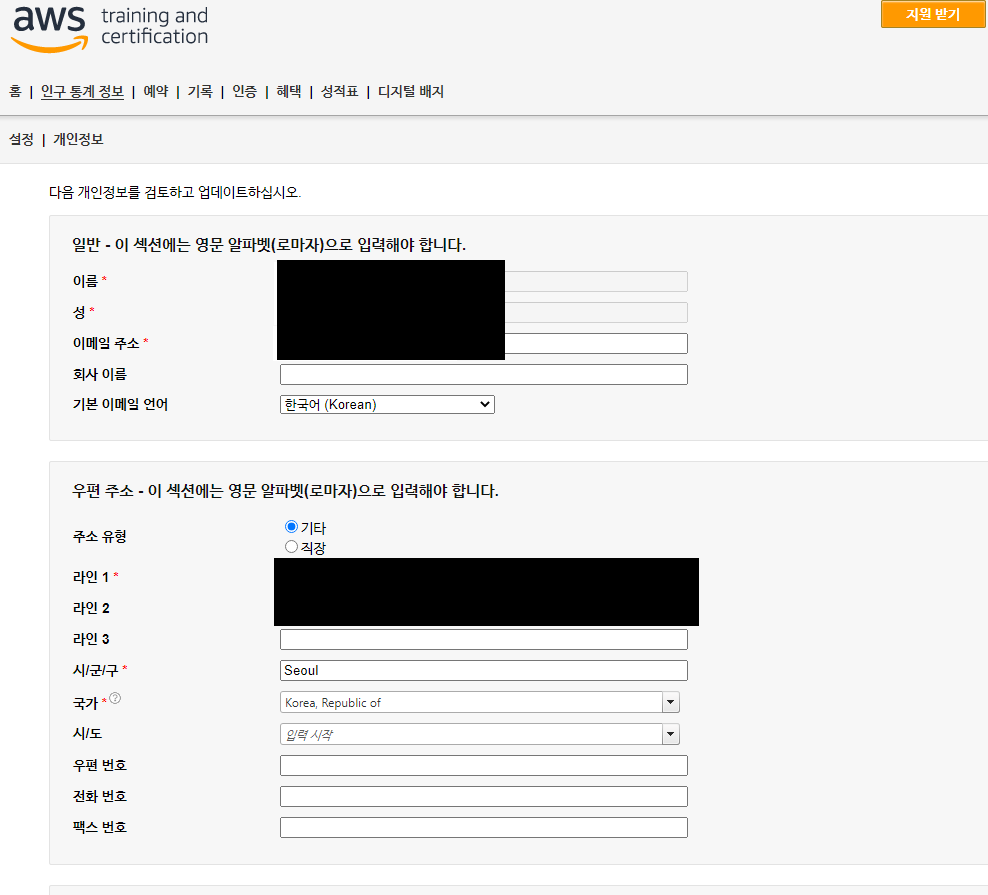 4. 상단 메뉴 중 인구 통계 정보(왜인지 모르겠지만,,,) 클릭 후 개인 정보를 작성해줍니다.