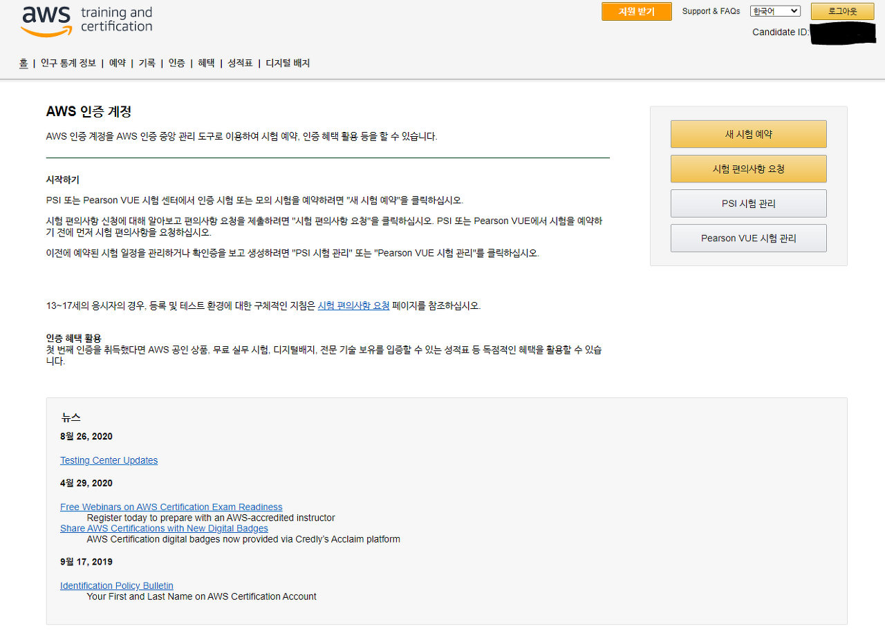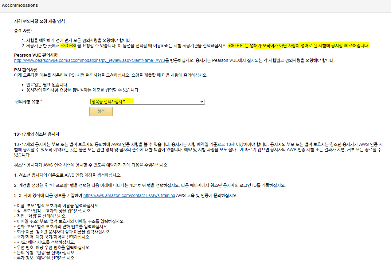 - Cert 홈페이지에서 아래의 시험 편의 사항 요청을 누릅니다.