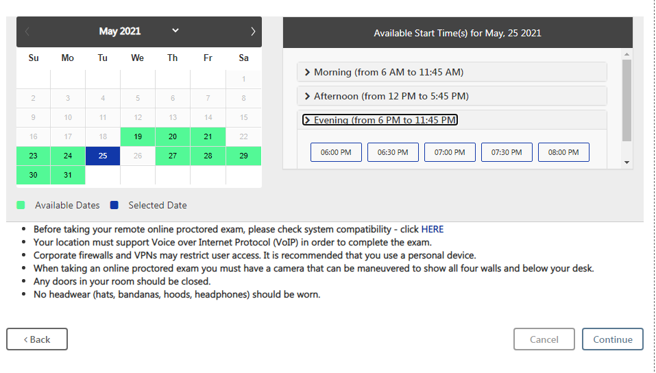 - 아래와 같이 시험을 보고 싶은 날짜와 시간을 고릅니다.