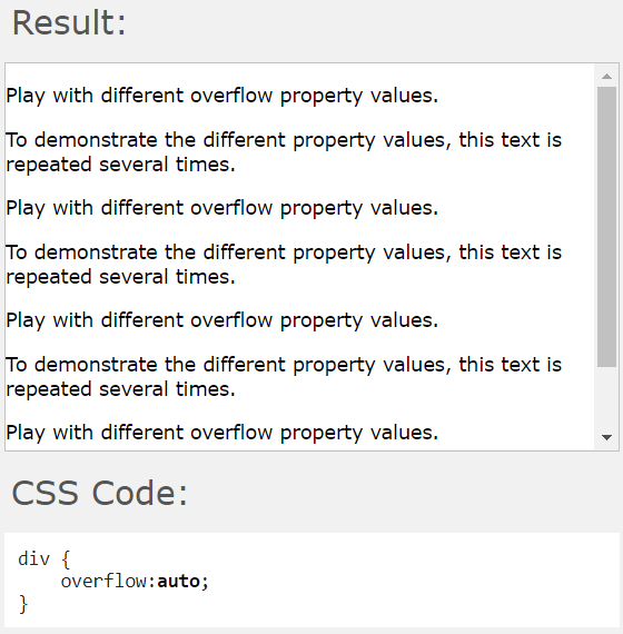 auto는 내용물이 넘쳐날 때만 스크롤바를 보여줍니다.