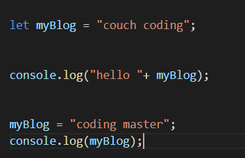 사진을 보면 let 으로 myBlog 라는 변수를 만들었고 값은 couch coding 이다.