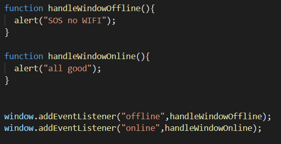 이벤트를 찾아보면 offline 과 online 이벤트가 있다.