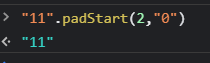 그렇다면 위에 코드도 이해될 것이다. 문자열 11 의 길이가 2개가 아니면 문자열 11앞에 "0"을 추가하는 코드이다. 이미 길이가 2이므로 padstart()는 아무 작업도 하지 않고 "11"이 그대로 출력되는 것이다.