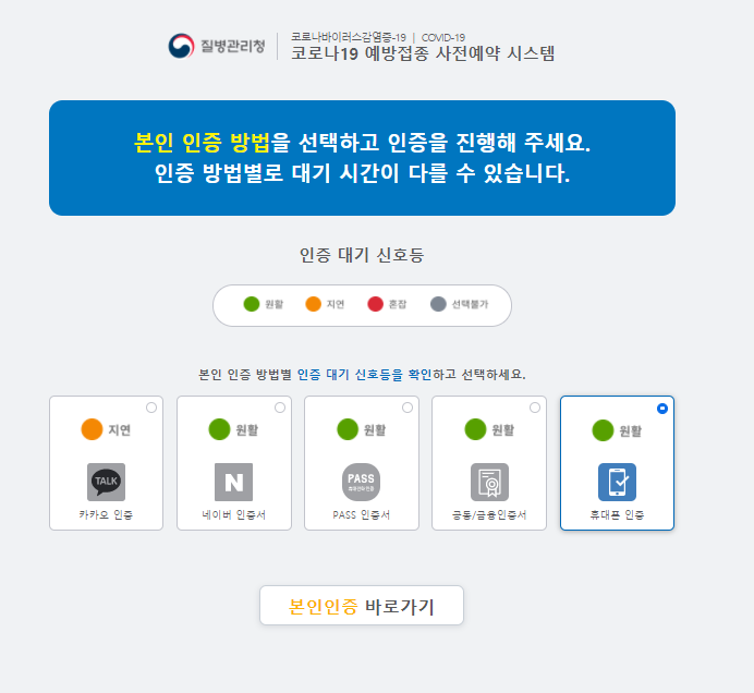 2. ๋ณธ์ธ ์ธ์ฆํ์ด์ง์์ ์นดํก์ธ์ฆ์ด ์๋ ํด๋ํฐ์ธ์ฆ ์ฒดํฌ ํ๊ธฐ!